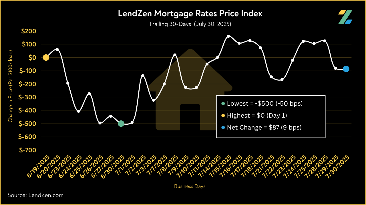 Consider the LendZen Index, which tracks the daily change in mortgage rate prices across a spectrum of mortgage-backed securities.