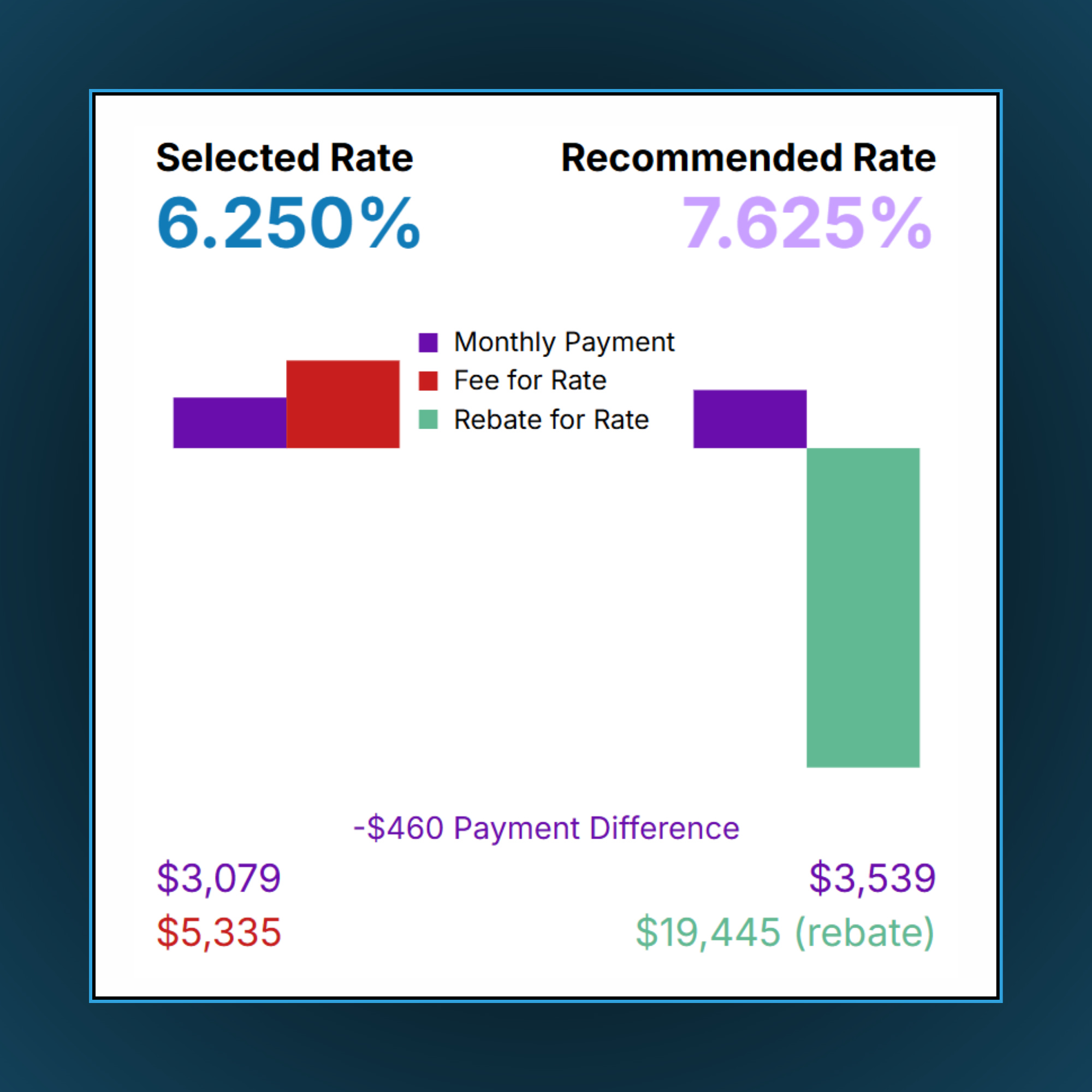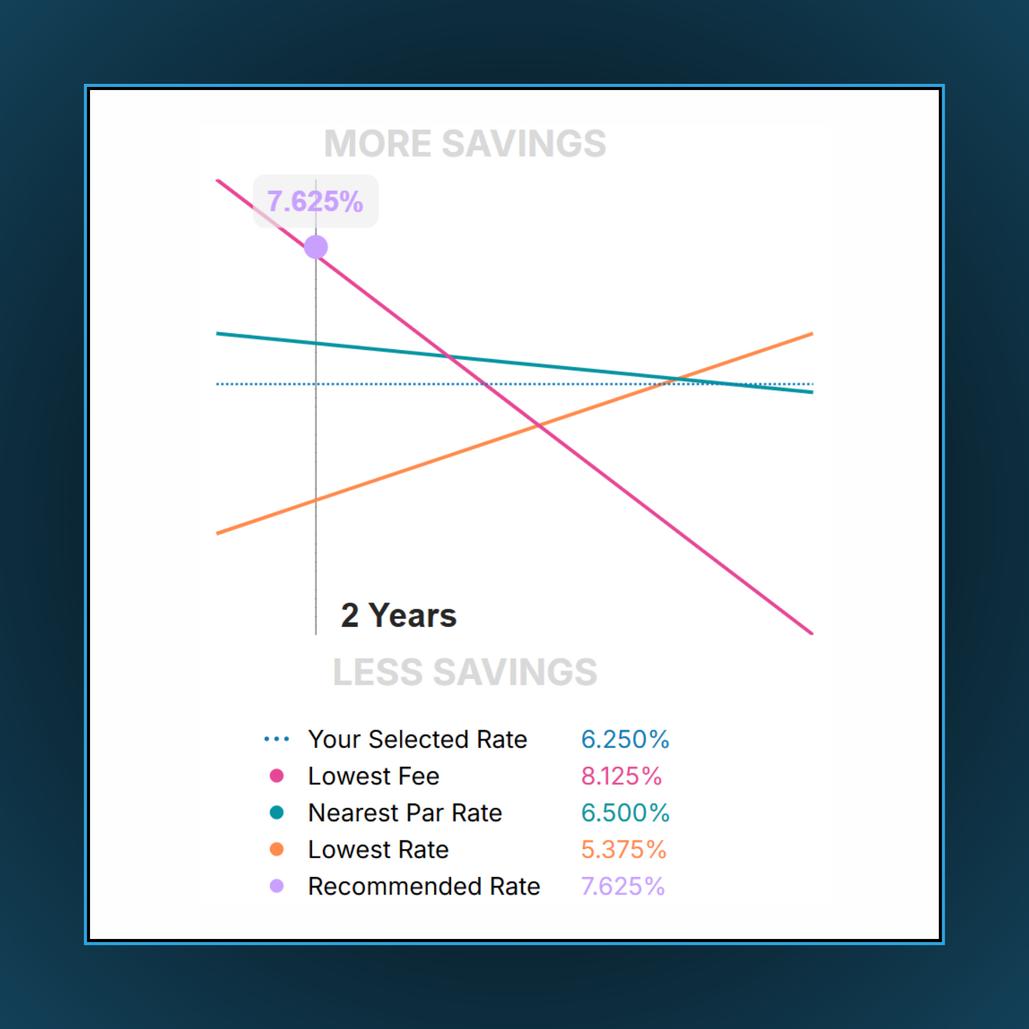 The detailed loan summaries have an interactive rate slider that shows all current mortgage rates and full transparency of costs upfront.