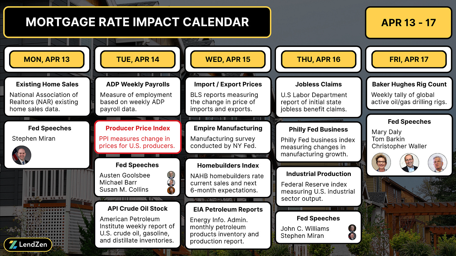 With more time on the calendar, markets have room to absorb this week’s data without panic, but any hawkish Fed comments or hotter-than-expected numbers could stall the improvement in mortgage pricing.