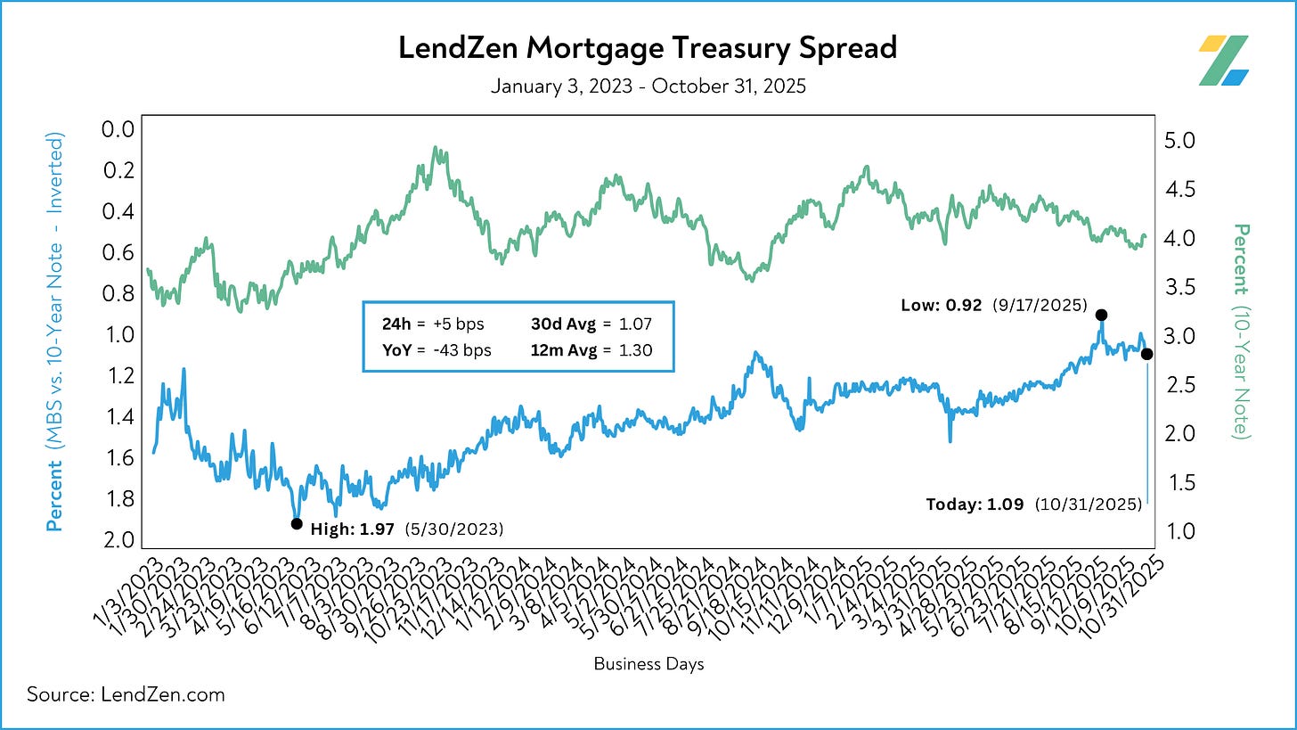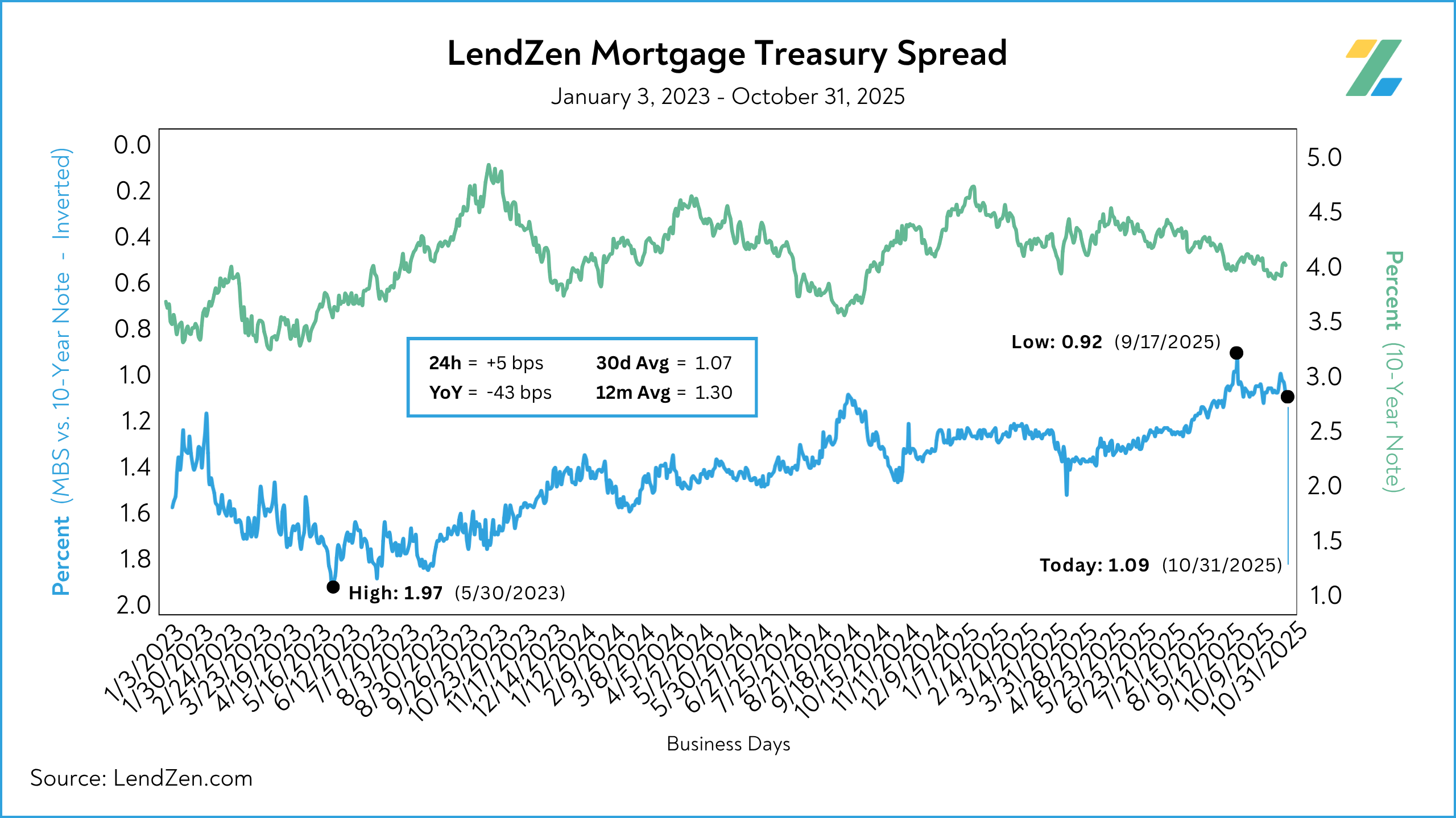 Published daily with the LendZen Index is the LendZen Mortgage-Treasury Spread.