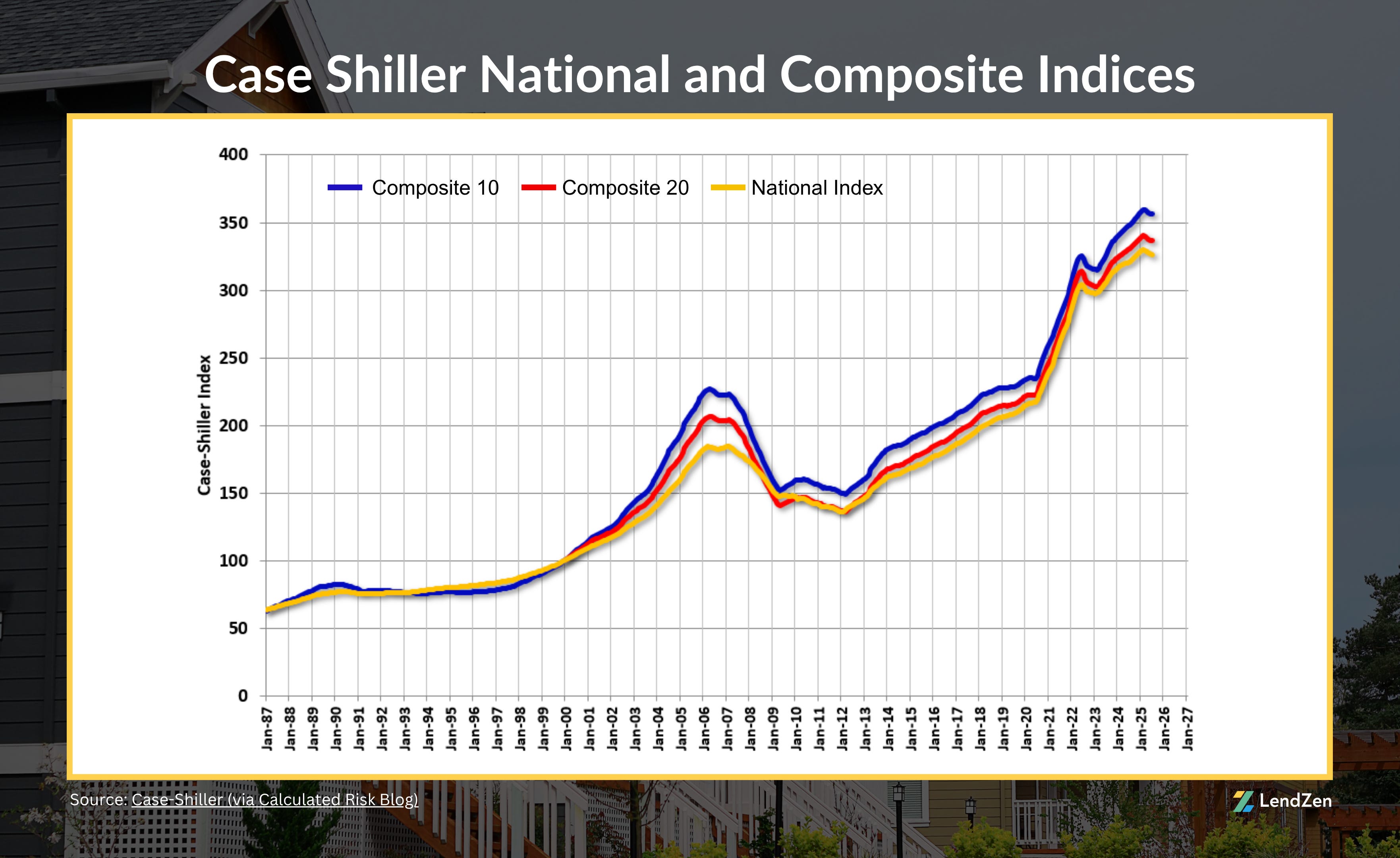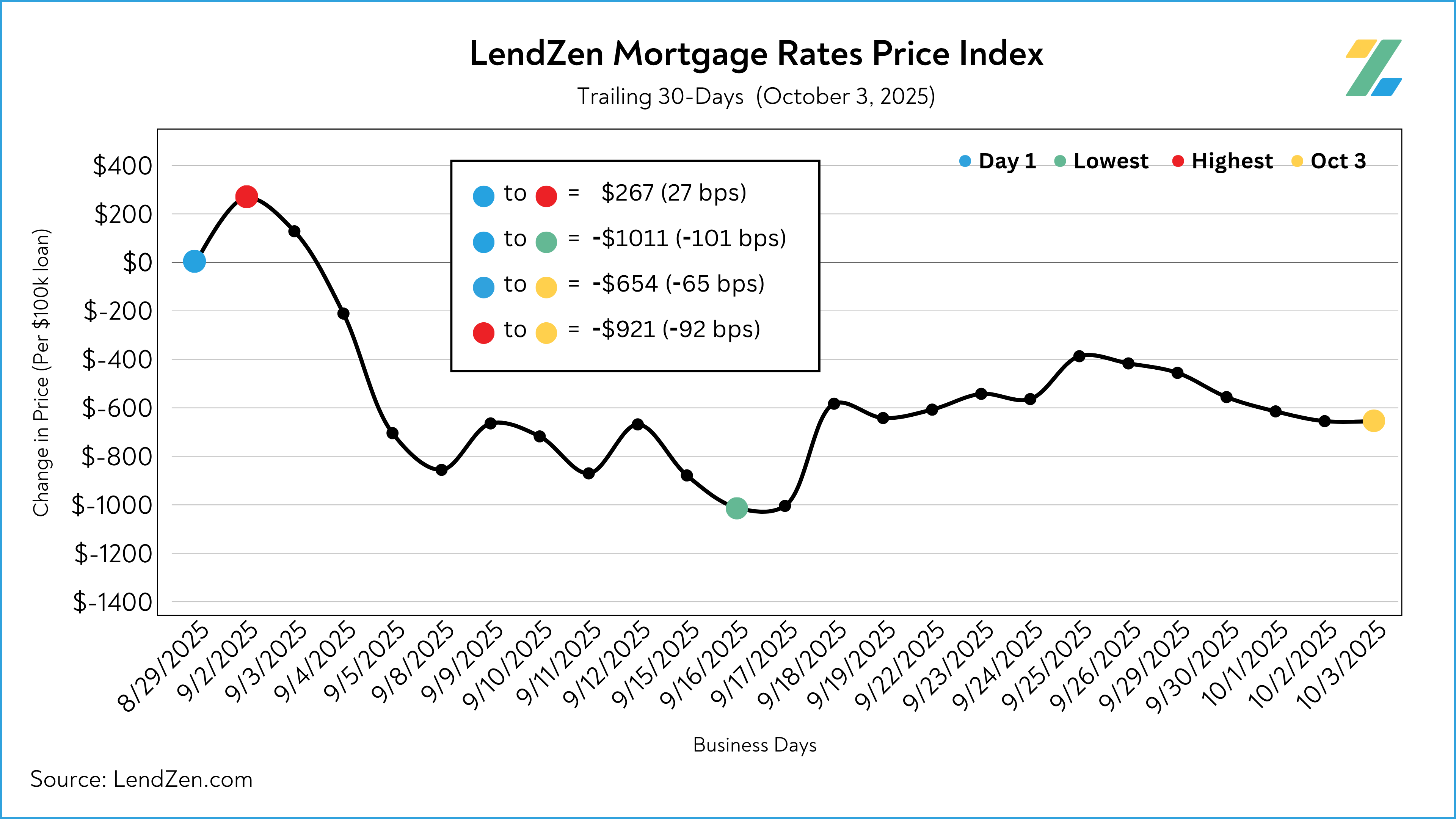 The LendZen Index calculates a daily change in the price of mortgage rates by tracking a spectrum of mortgage-backed securities (MBS).