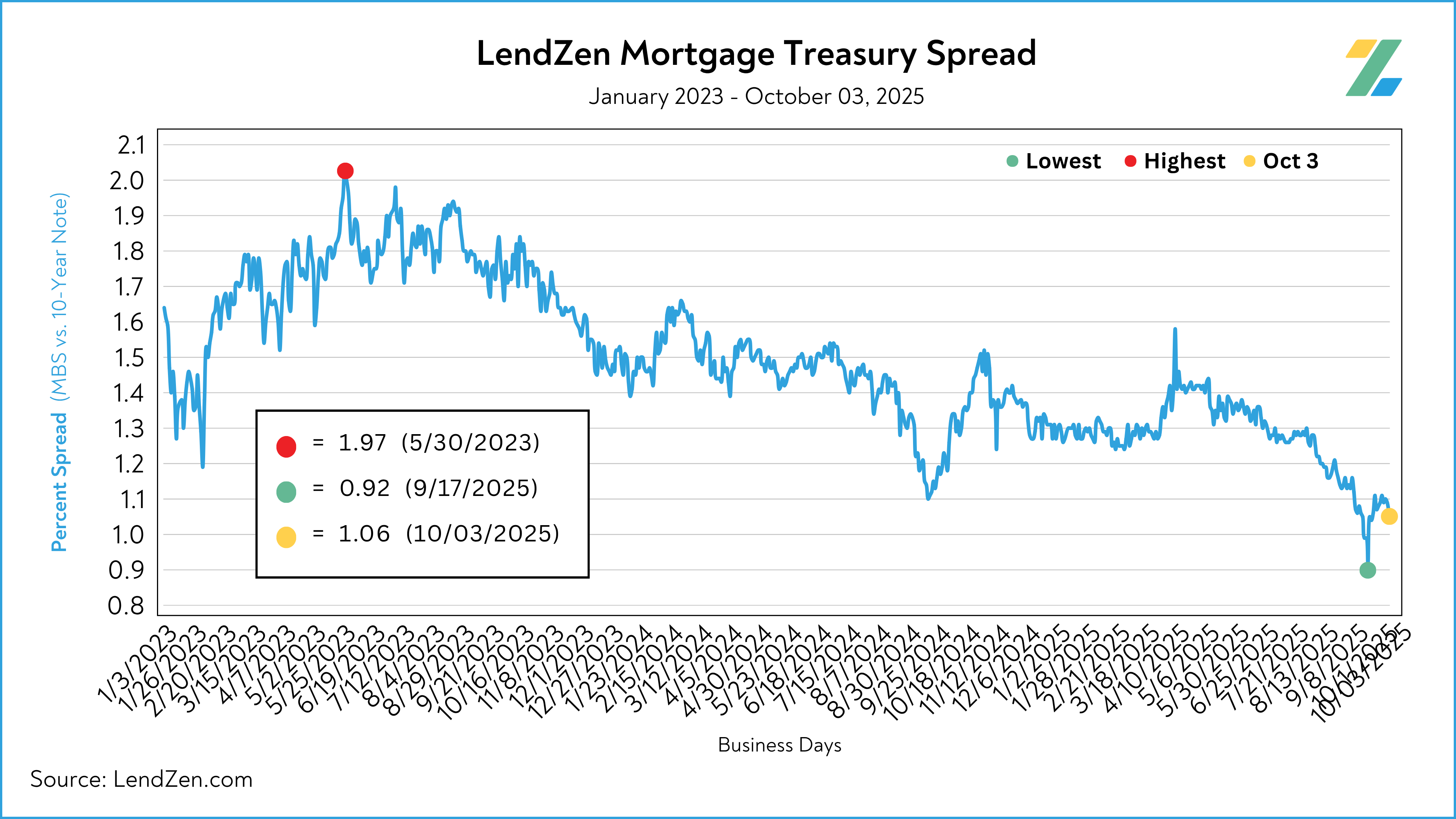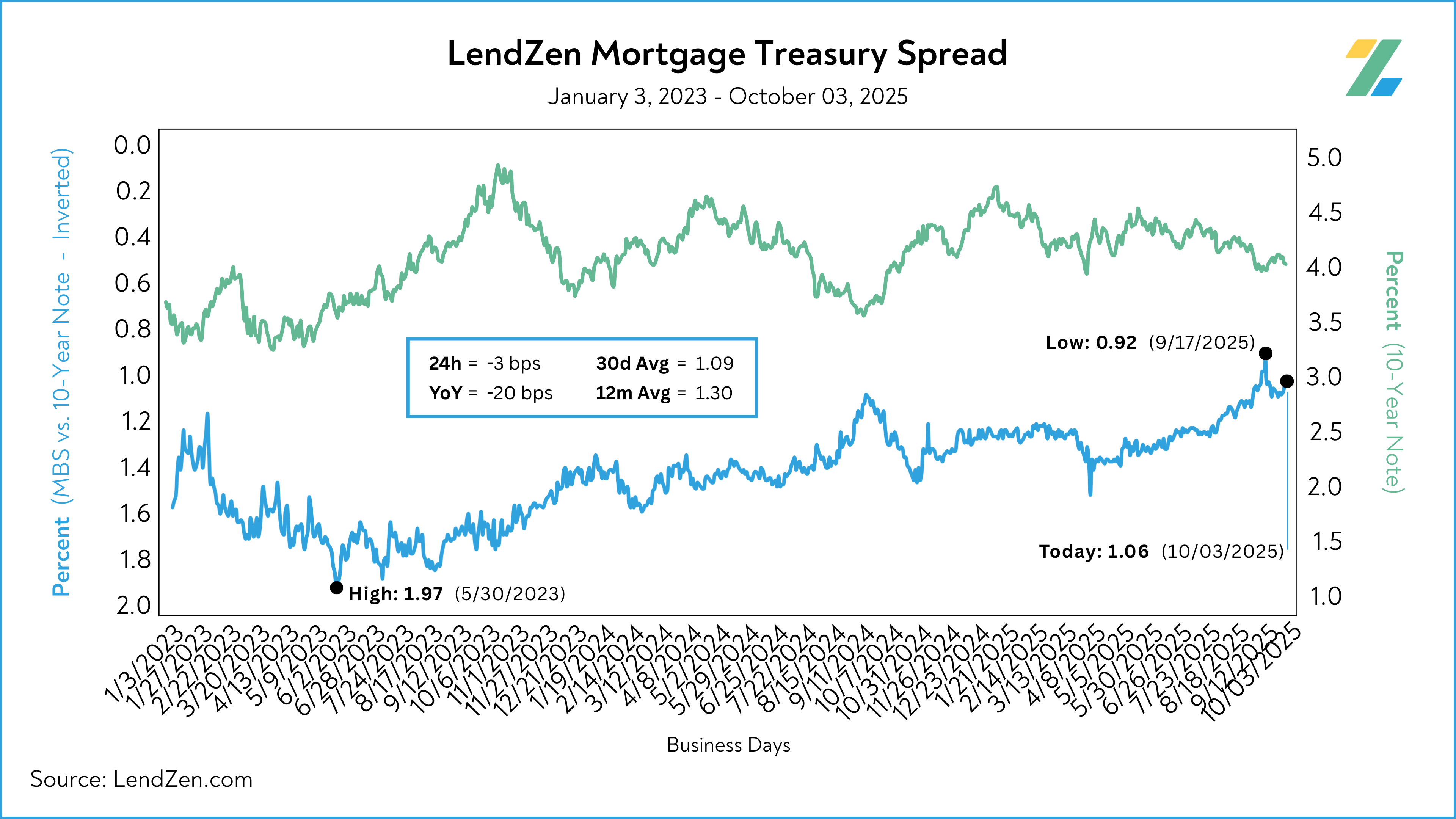 Published daily with the LendZen Index is the LendZen Mortgage-Treasury Spread.