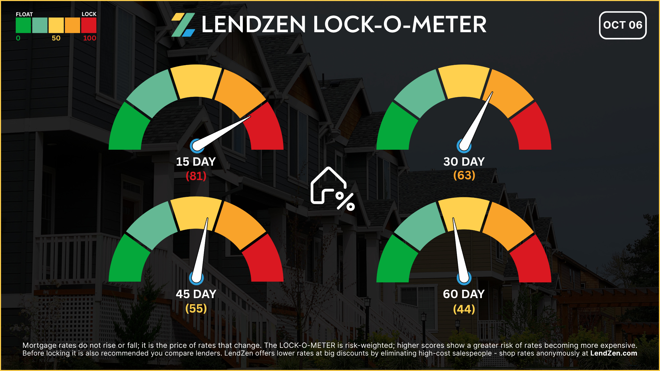 The LendZen LOCK-O-METER provides borrowers with a risk-weighted score based on how various macroeconomic events, including market data, central bank announcements, and geopolitics, each historically impacts the price of bonds.