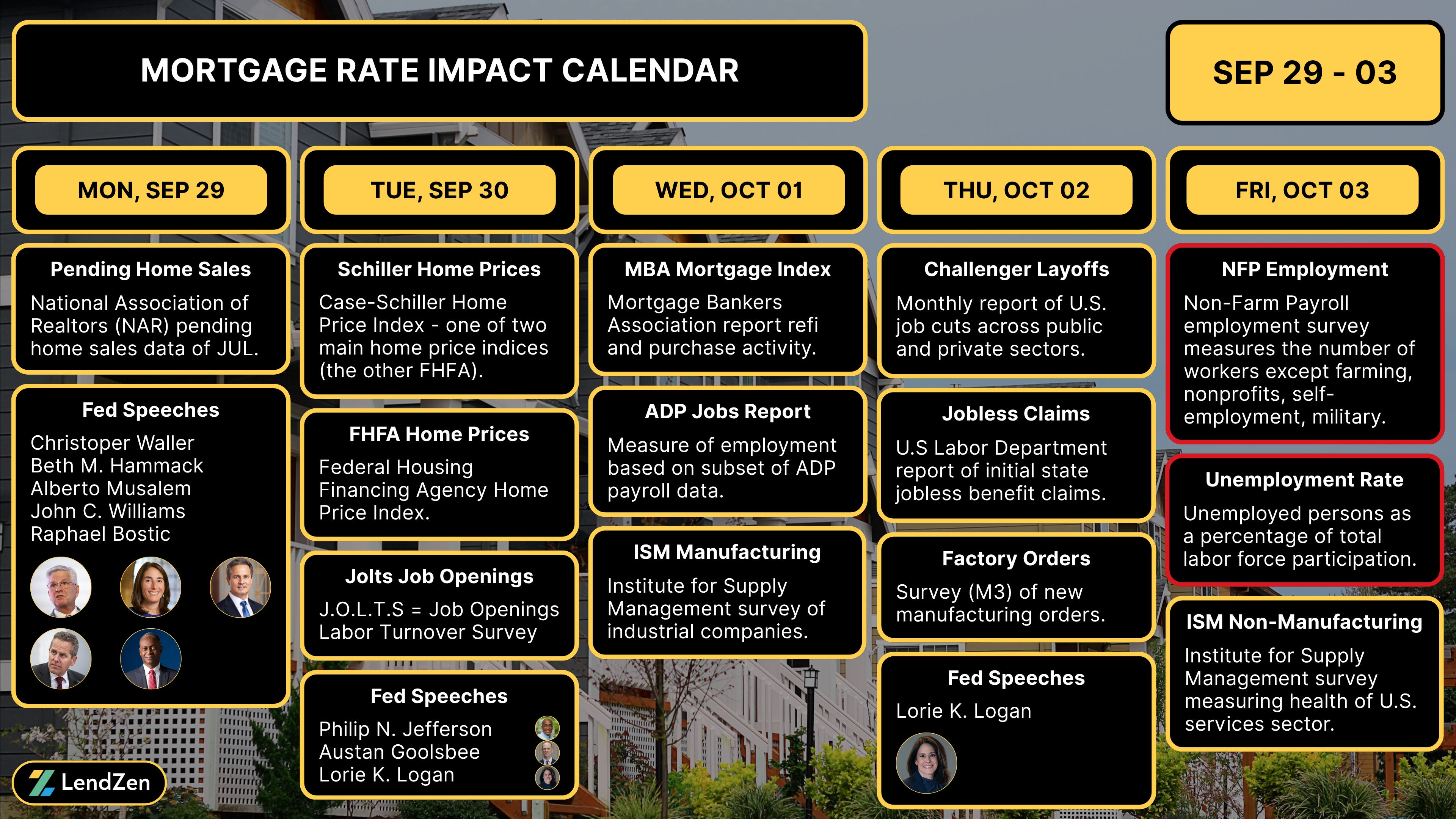 See the attached Mortgage Rate Impact Calendar โ events marked blue could be delayed by the shutdown.