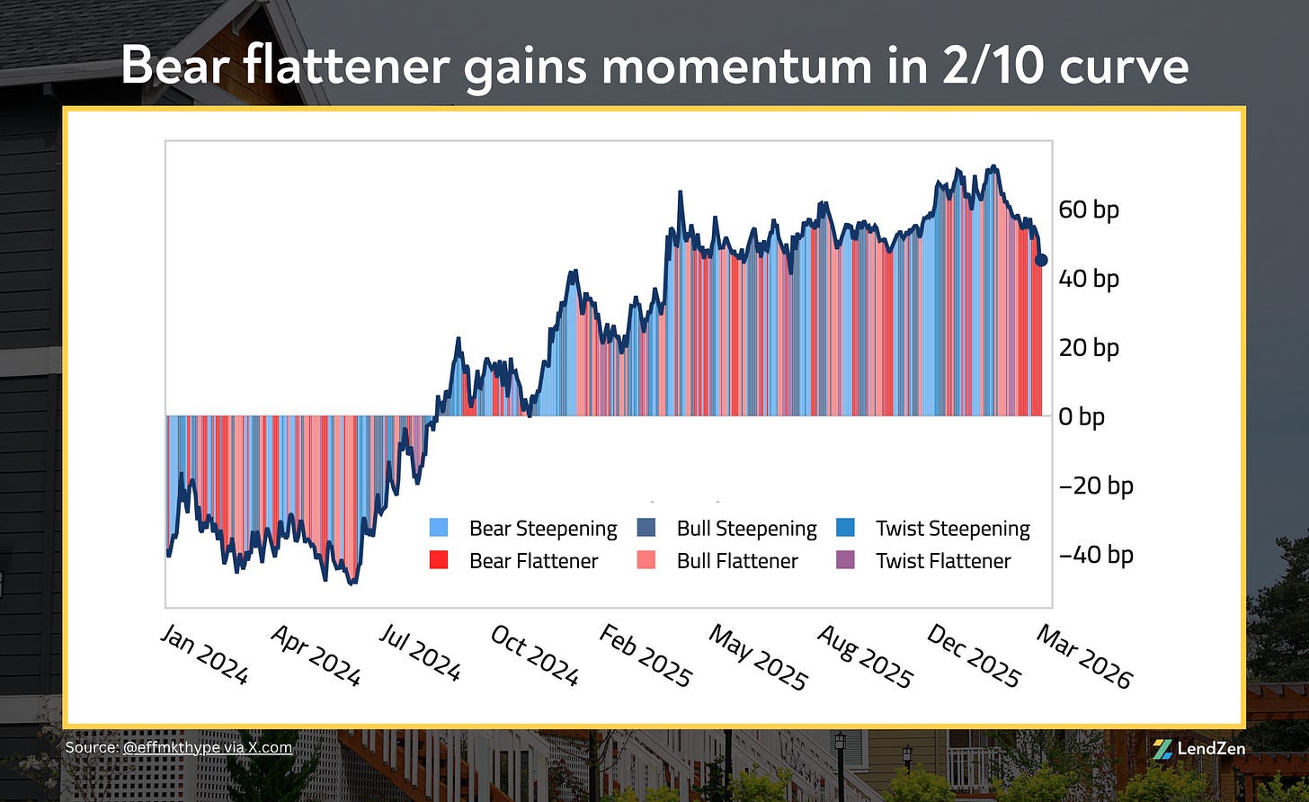 A bear flattener has been underway, which implies the market now thinks a Fed rate hike is on the horizon.