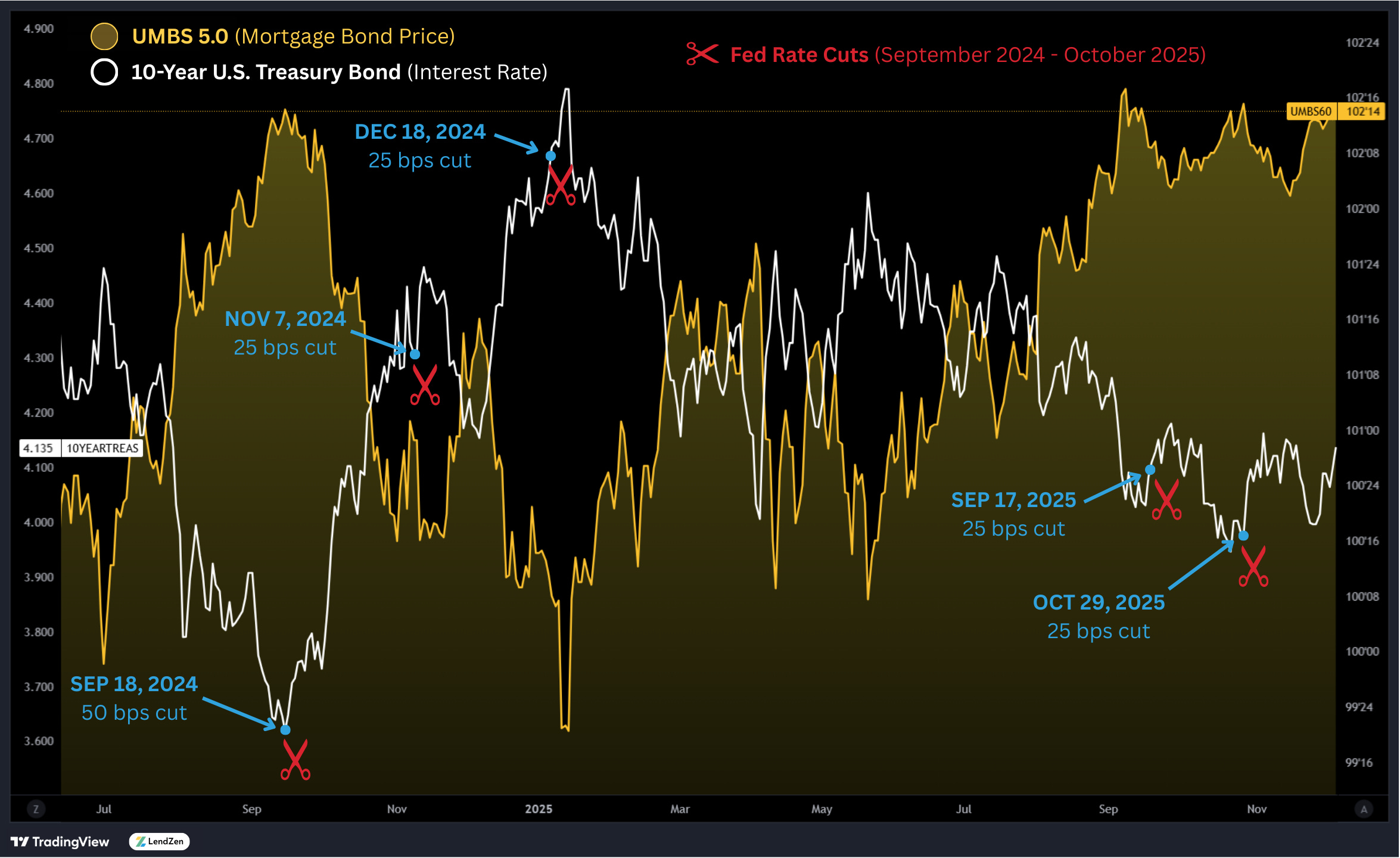 Both are effective for visualizing how the PRICE of mortgage rates has changed, while the LendZen Index is published daily at LendZen.substack.com