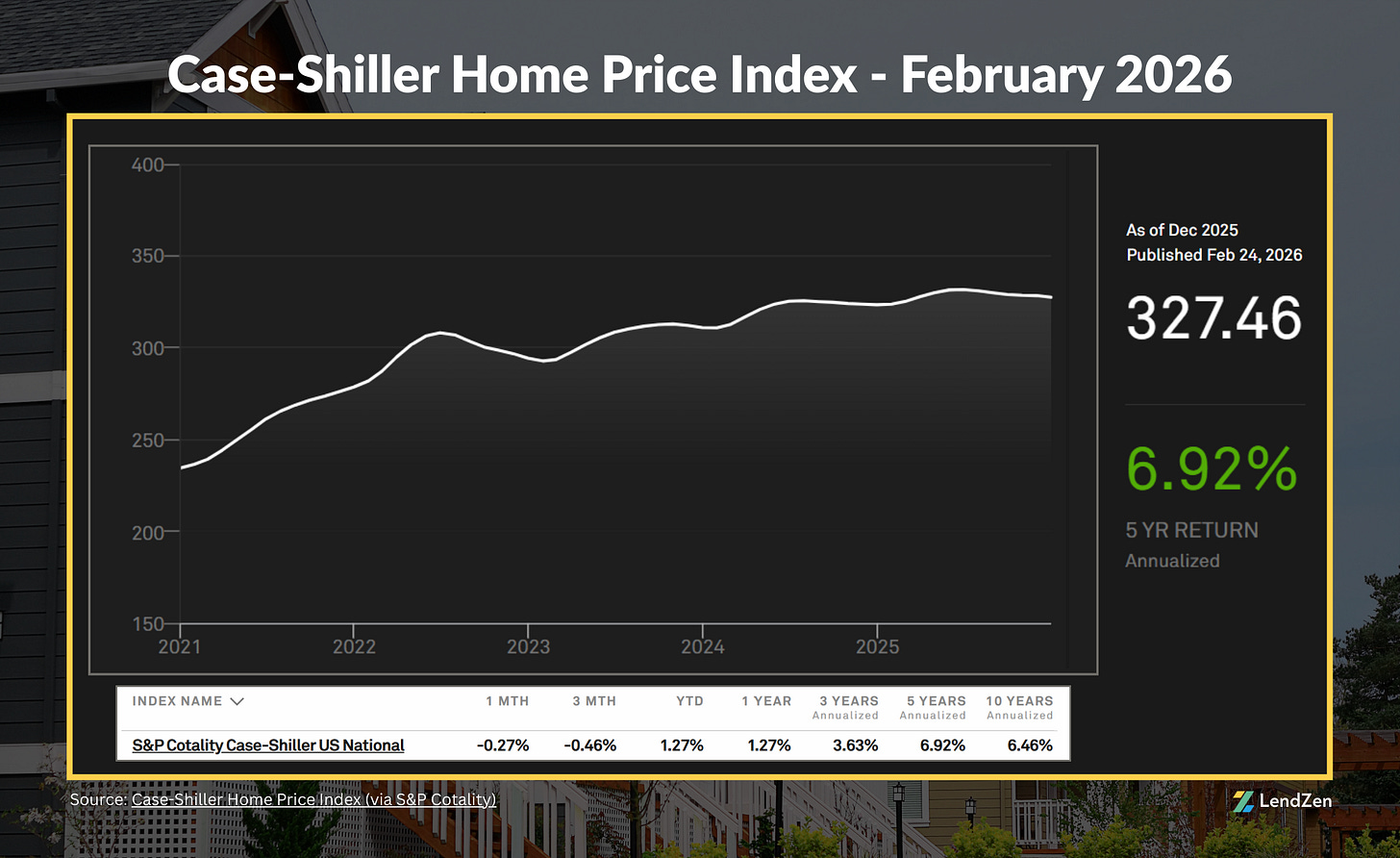 Tuesday’s Shiller Home Price Index also satisfied expectations, reporting a 1.27% annual increase for December; the Shiller Index reports on a two-month lag.