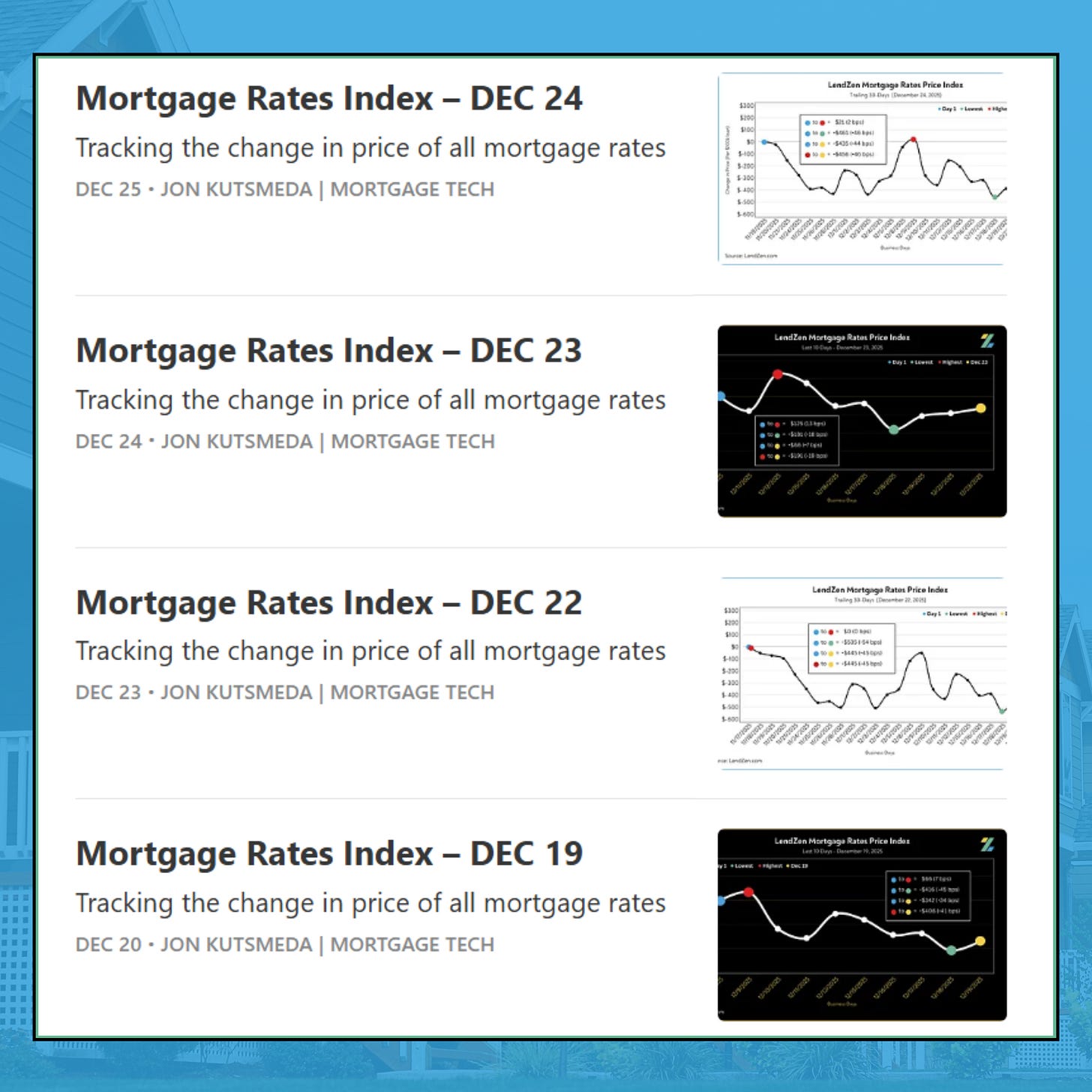 Both are effective for visualizing how the PRICE of mortgage rates has changed, while the LendZen Index is published daily at LendZen.substack.com
