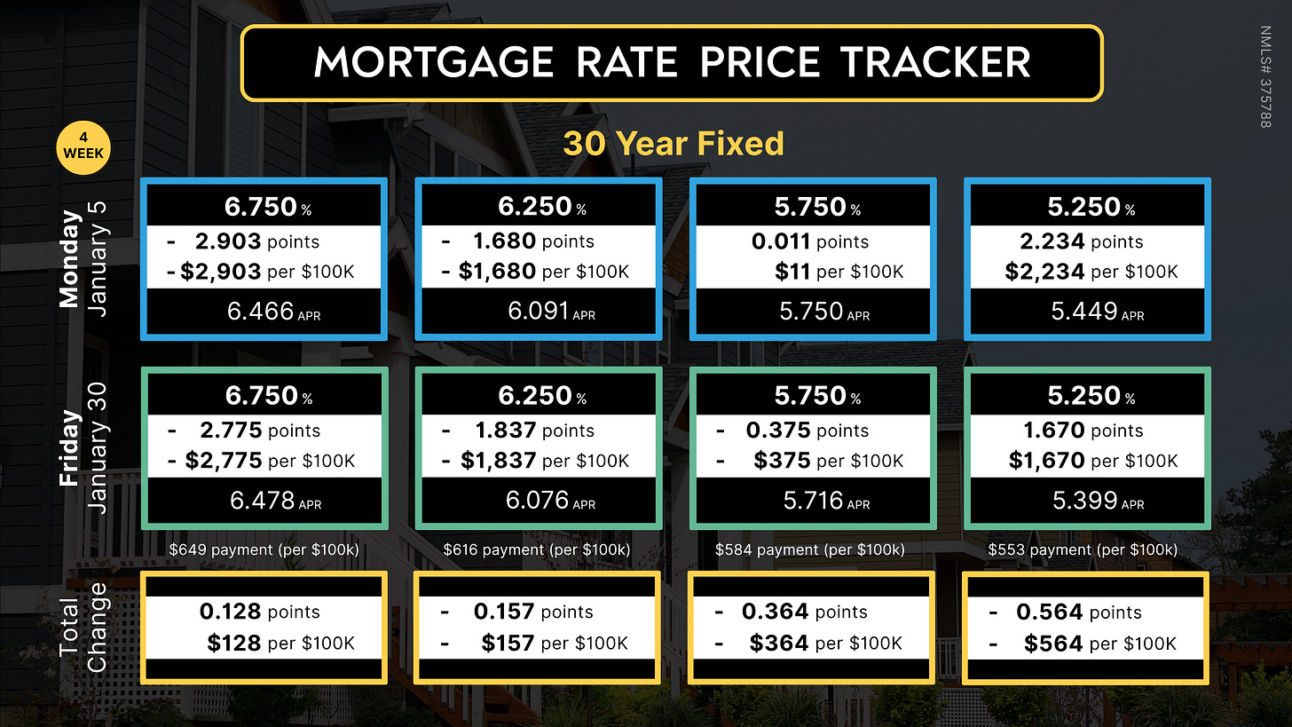 Mortgage Rate Price Tracker 🏠📉🔍 (JAN 5 – 30)