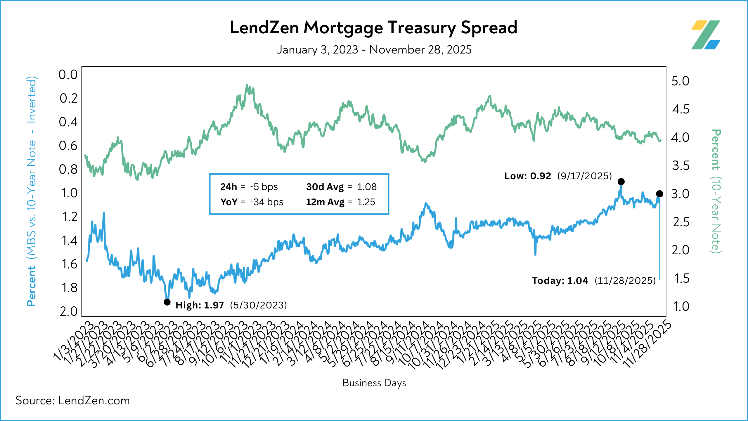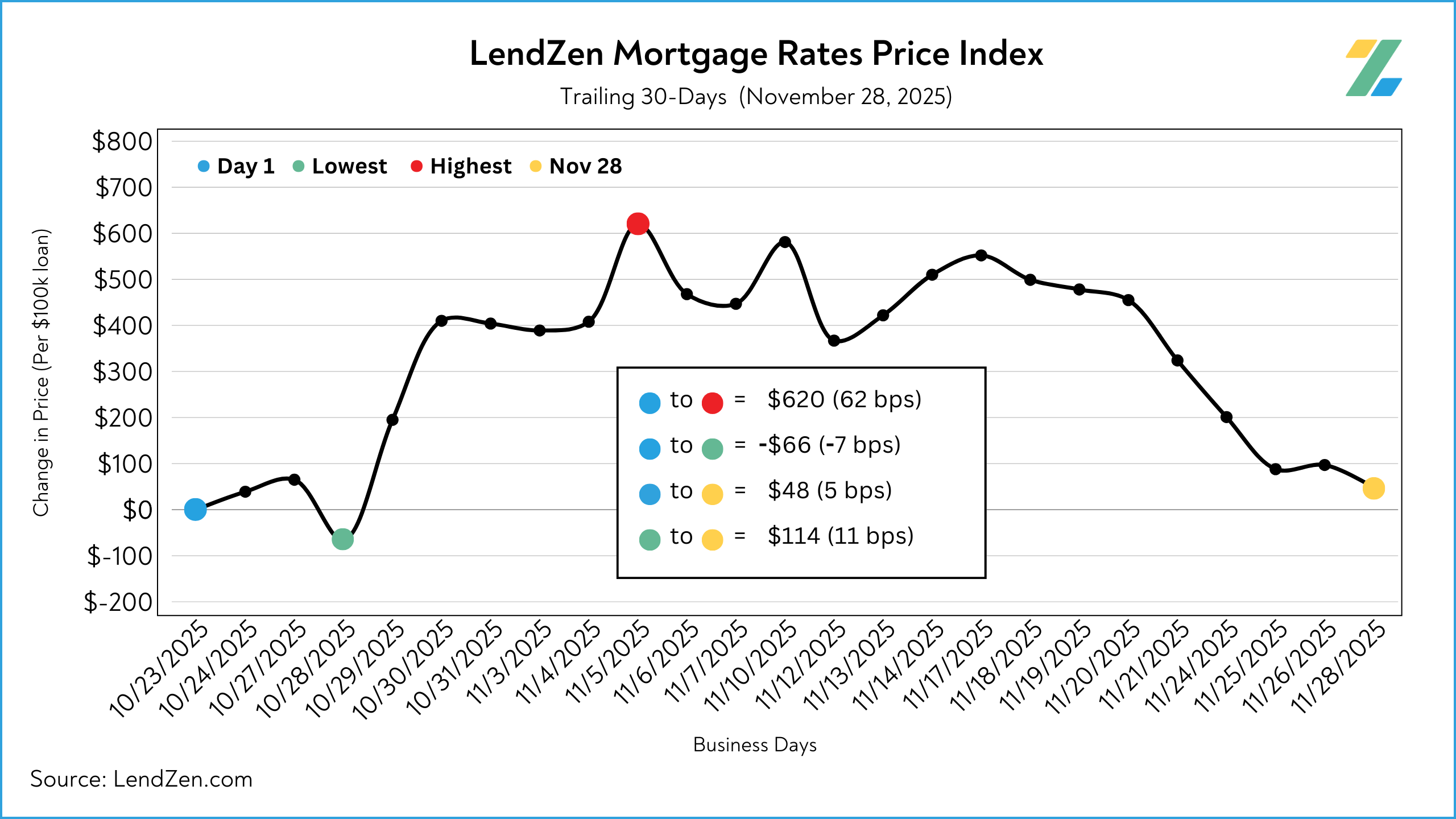 Both are effective for visualizing how the PRICE of mortgage rates has changed, while the LendZen Index is published daily at LendZen.substack.com