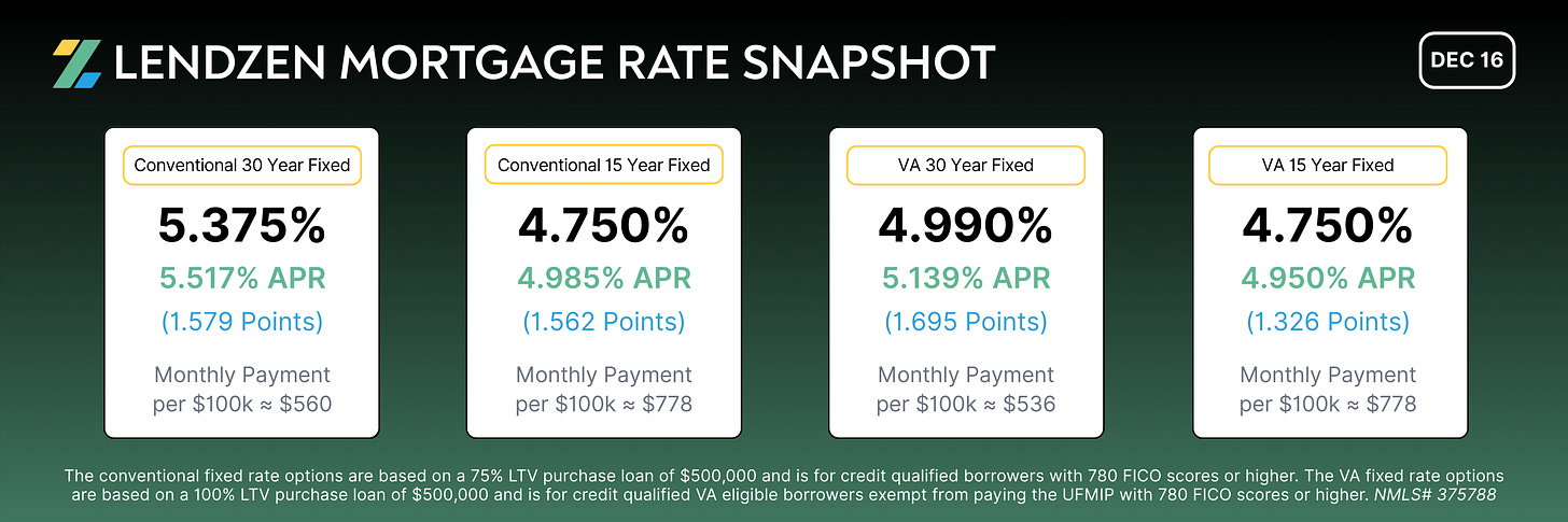 Mortgage Rate Snapshot 📷📉🏠 (DEC 16)