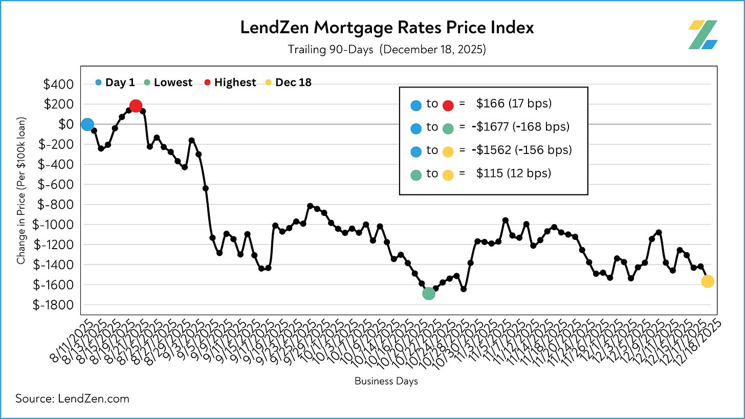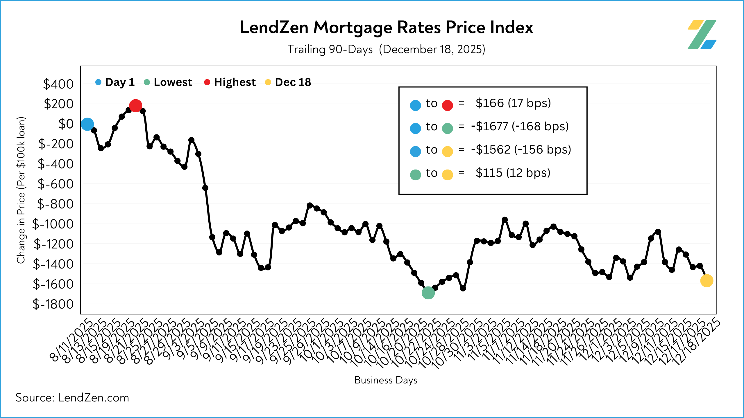 The LendZen Index calculates a daily change in the price of mortgage rates by tracking a spectrum of mortgage-backed securities (MBS).