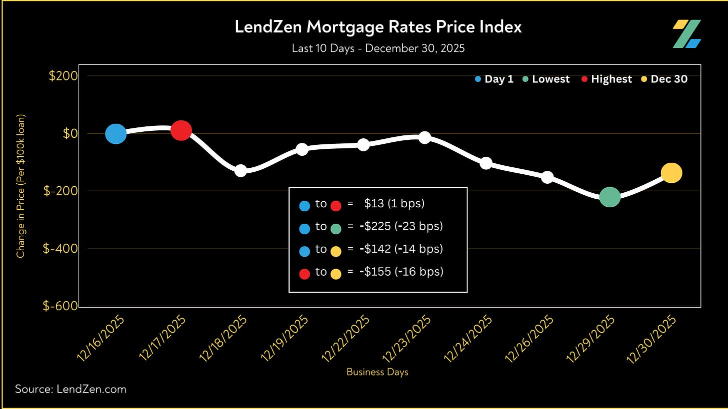 The LendZen Index calculates a daily change in the price of mortgage rates by tracking a spectrum of mortgage-backed securities (MBS).