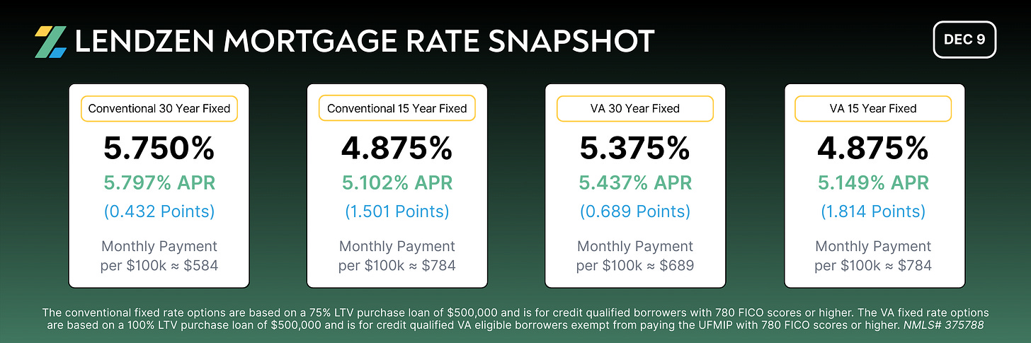 Mortgage Rate Snapshot 📷📉🏠 (DEC 9)