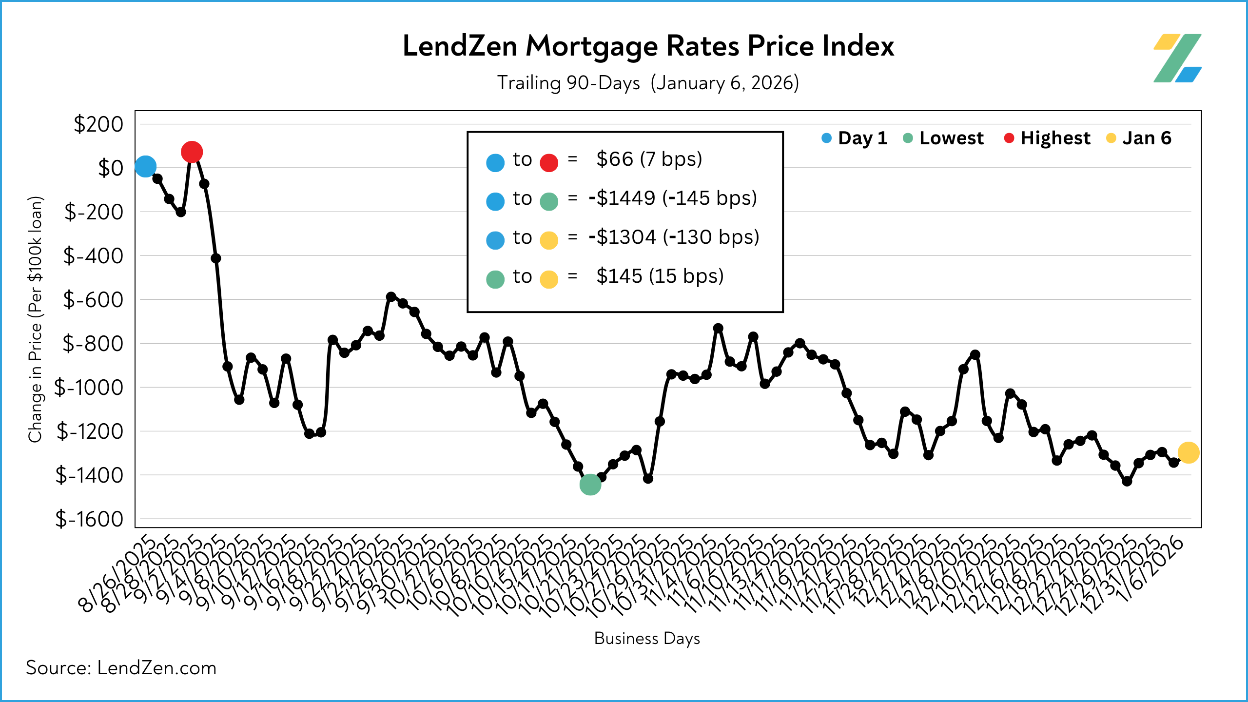 Mortgage rate prices are within 15 bps of the October 21 multi-year low and down 130 bps the last 90 days.