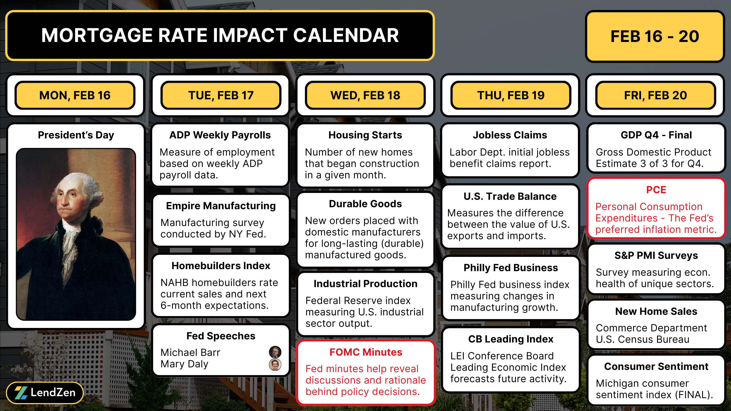 Personal Consumption Expenditures is the Fed’s preferred inflation metric and is bookended on Friday by the final Q4 GDP numbers and the University of Michigan final consumer sentiment reading for February.