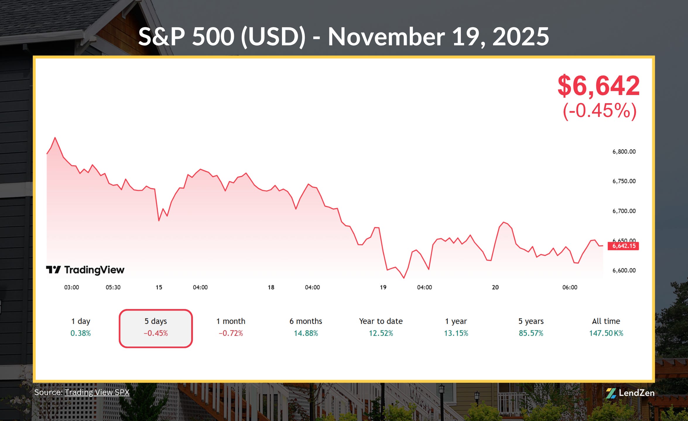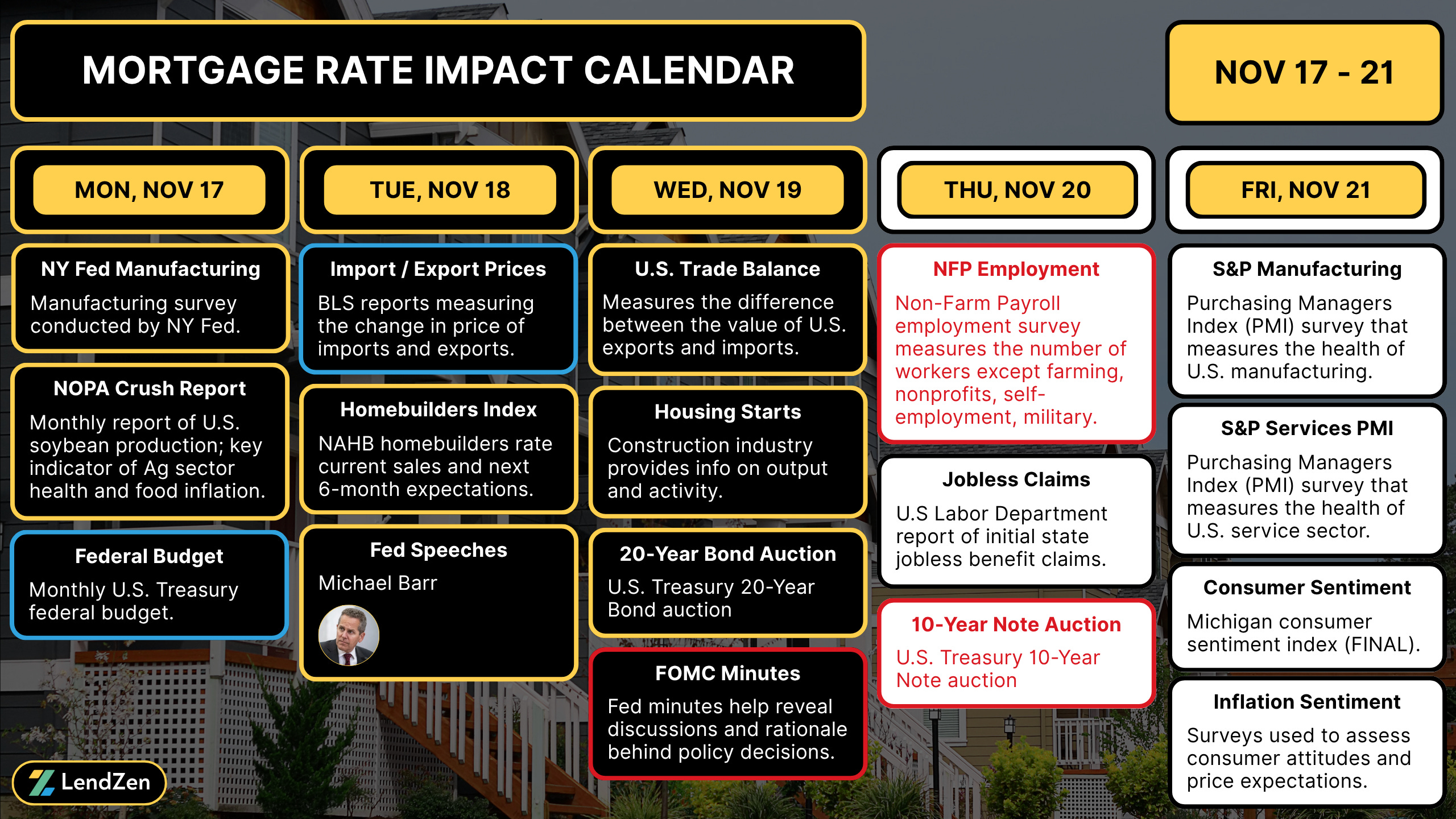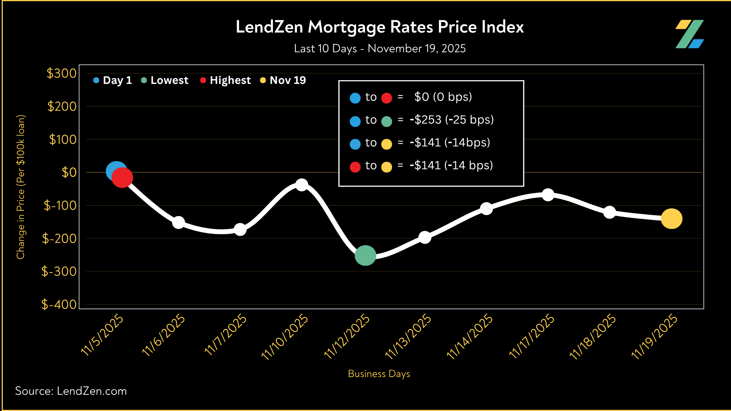 The LendZen Index calculates a daily change in the price of mortgage rates by tracking a spectrum of mortgage-backed securities (MBS).