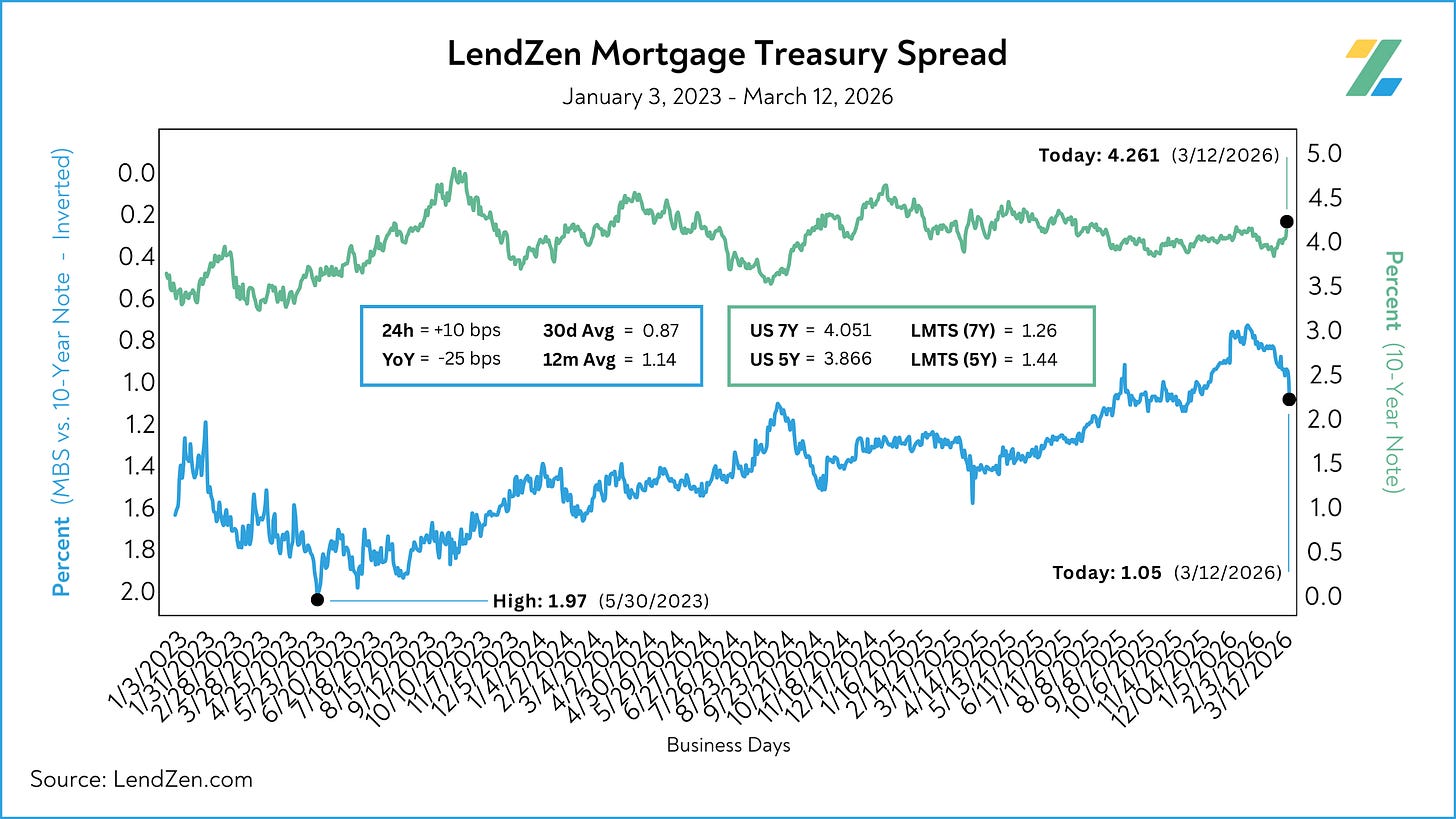 This means mortgage rates have experienced a lot more pain in the last two weeks than Treasuries.