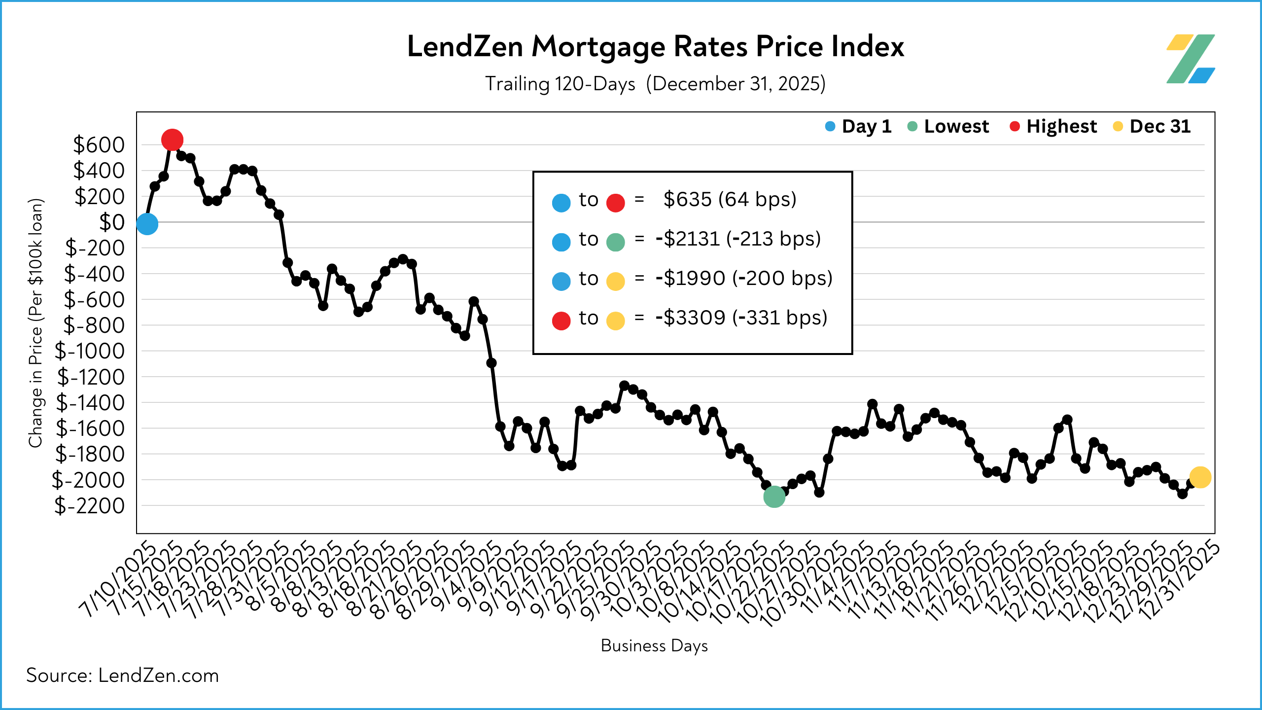 The LendZen Index calculates a daily change in the price of mortgage rates by tracking a spectrum of mortgage-backed securities (MBS).