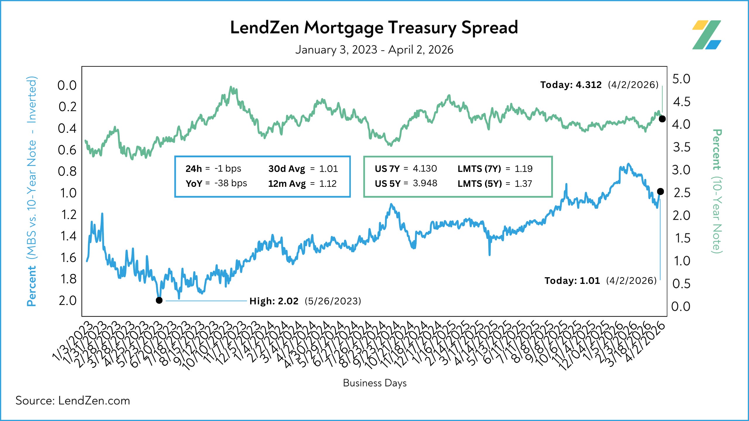 Unlike the previous 4 weeks, mortgage-backed securities were the better performer, helping to tighten MBS-Treasury spreads each day.