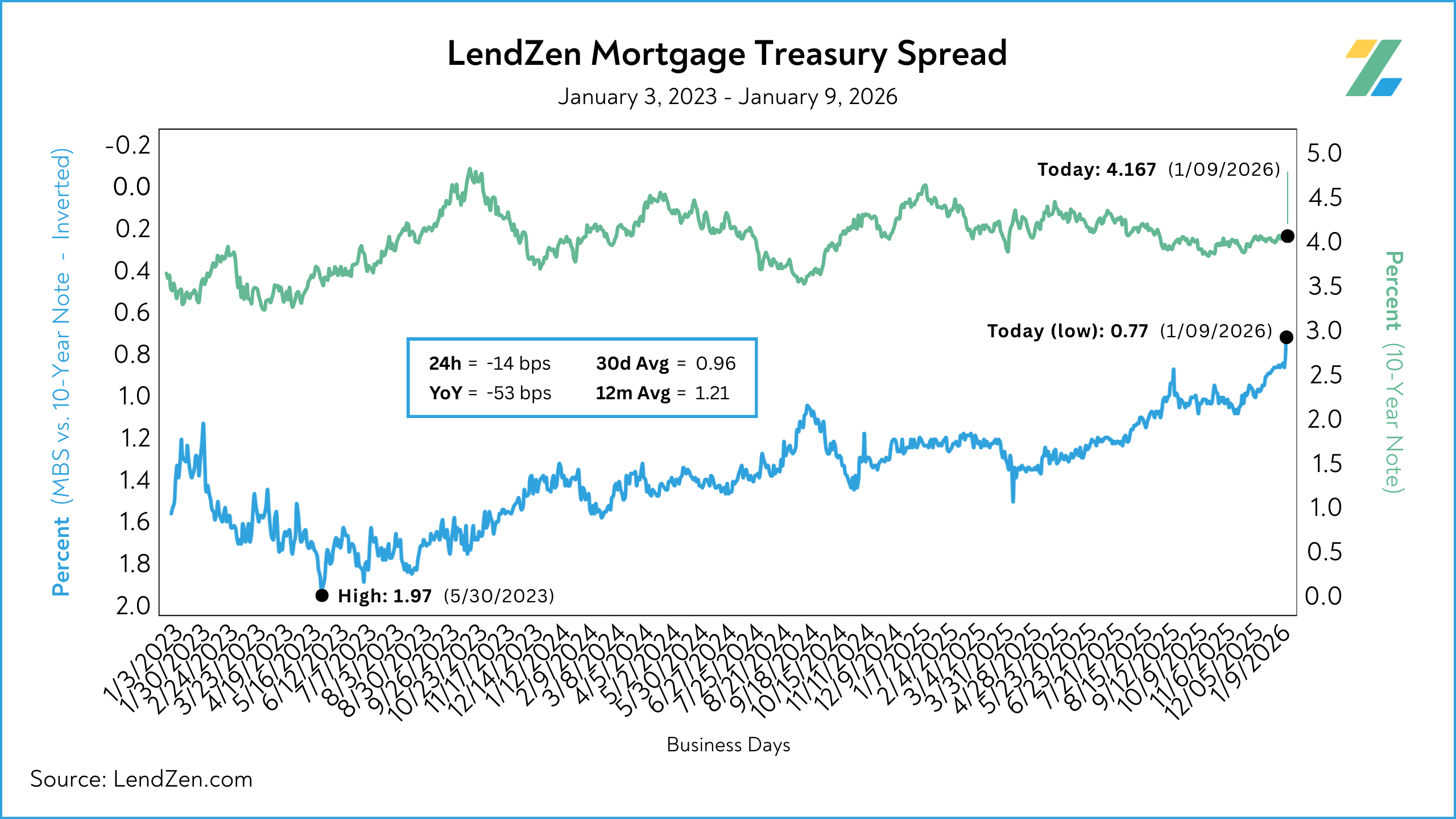 The 10-Year Treasury didn’t budge but MBS prices soared, massively compressing the spread by 14 bps.