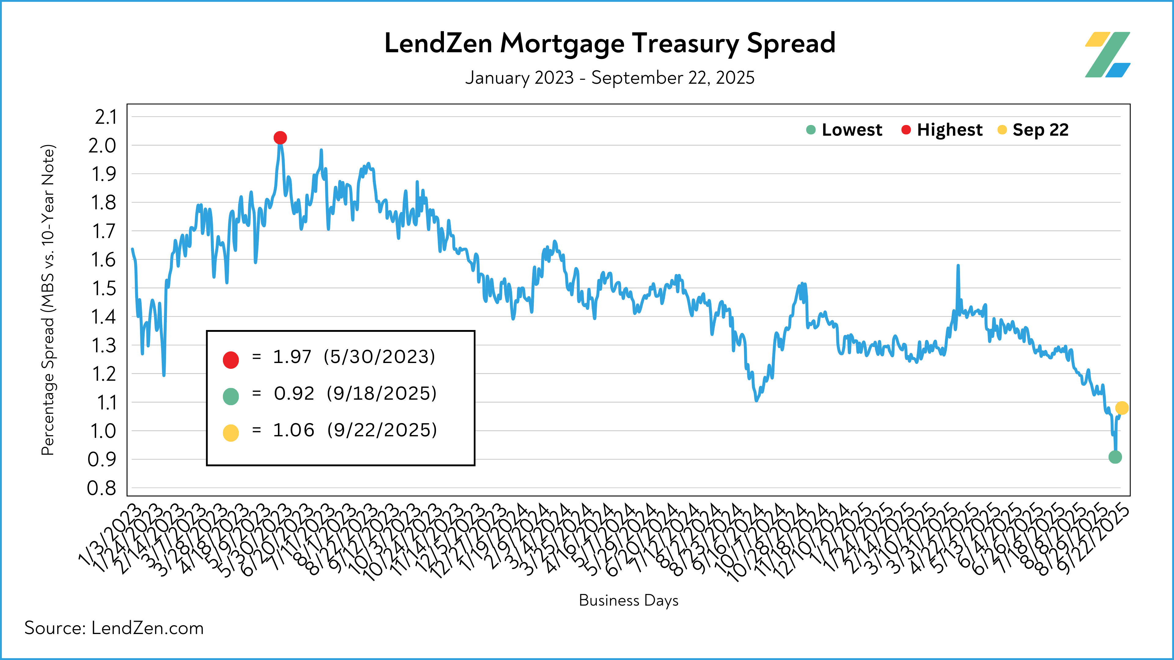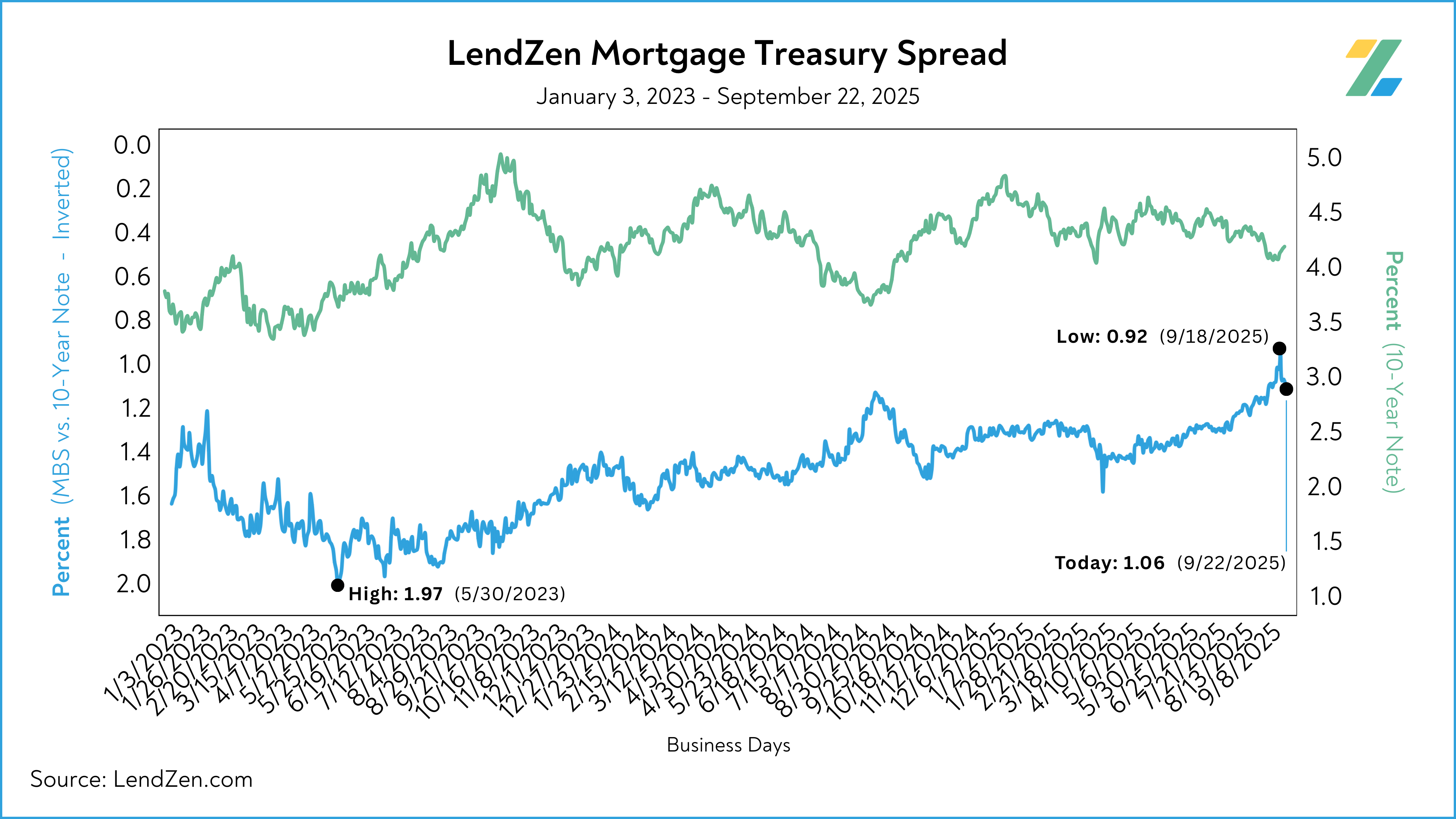 The LendZen Mortgage Treasury Spread gives you a measurement of that spread using fact, not fiction.