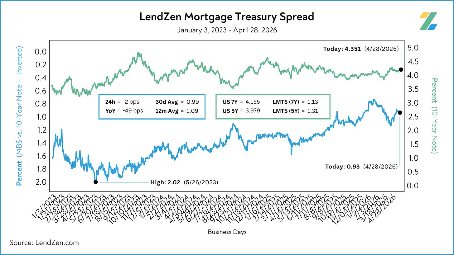 However, MBS-Treasury spreads remain tight, holding below 1.00 for the last 3 weeks.