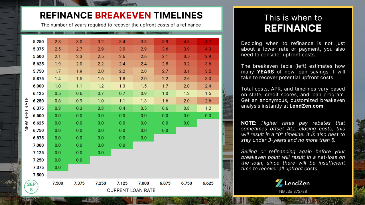 Higher rates sometimes offset ALL closing costs, this will result in a “0” timeline. It is also best to stay under 3-years and no more than 5.