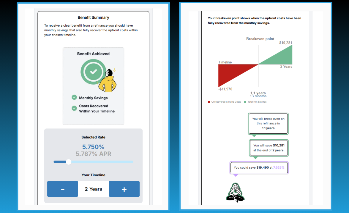 The detailed loan summaries have an interactive rate slider that shows all current mortgage rates and full transparency of costs upfront.