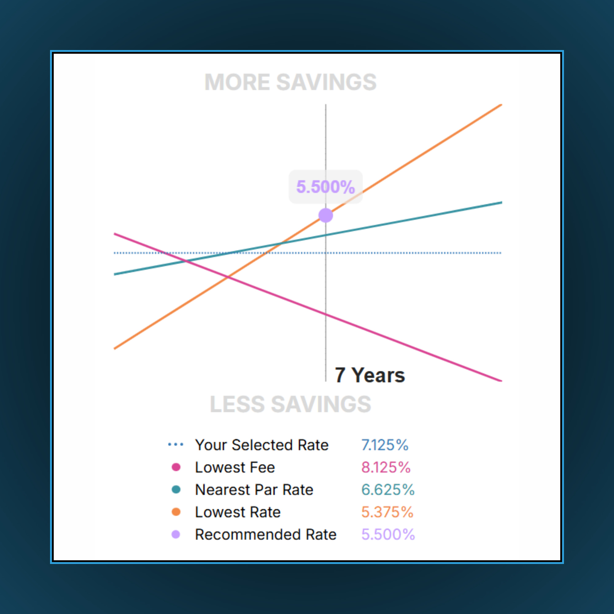 Instead, choose whichever rate provides the most net-savings at the end of your selected timeline.