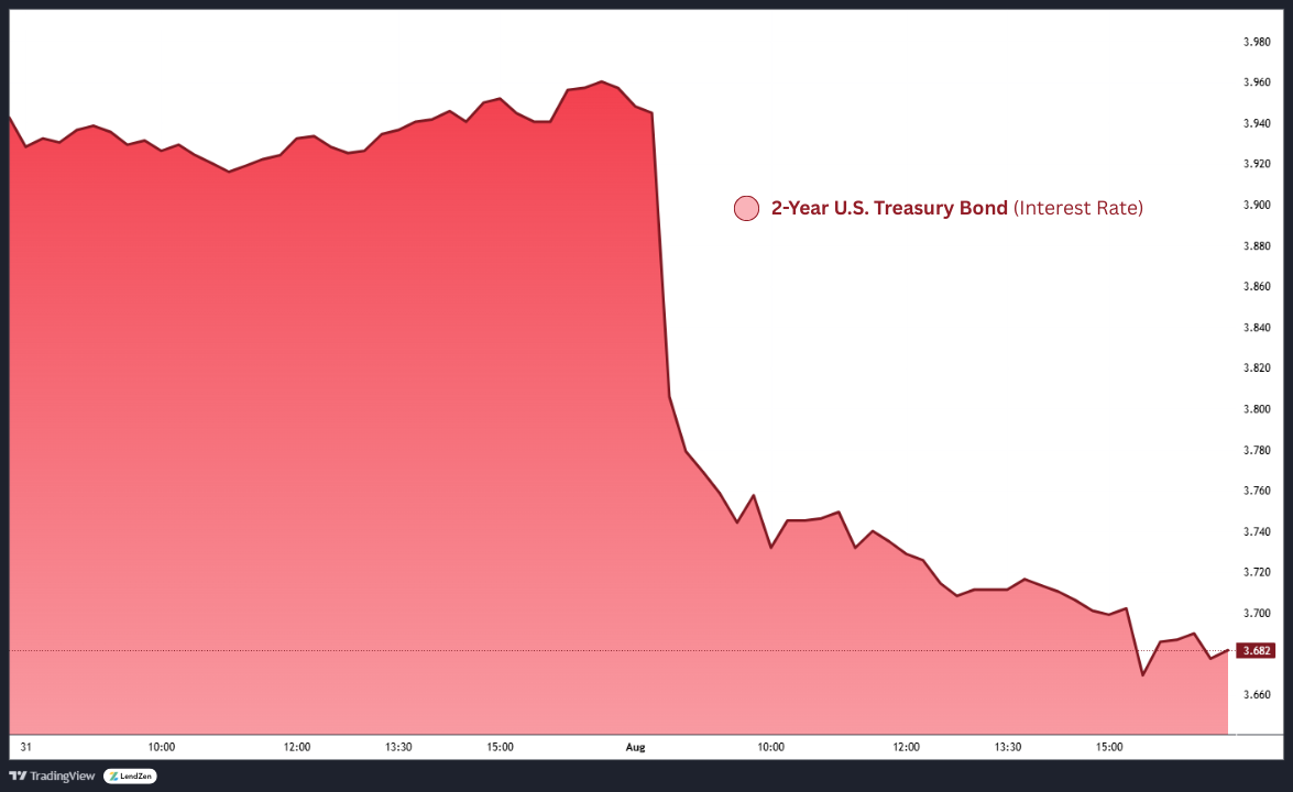 It is no coincidence then that the 2-Year declined exactly 25 basis points on Friday.