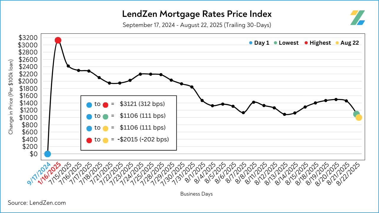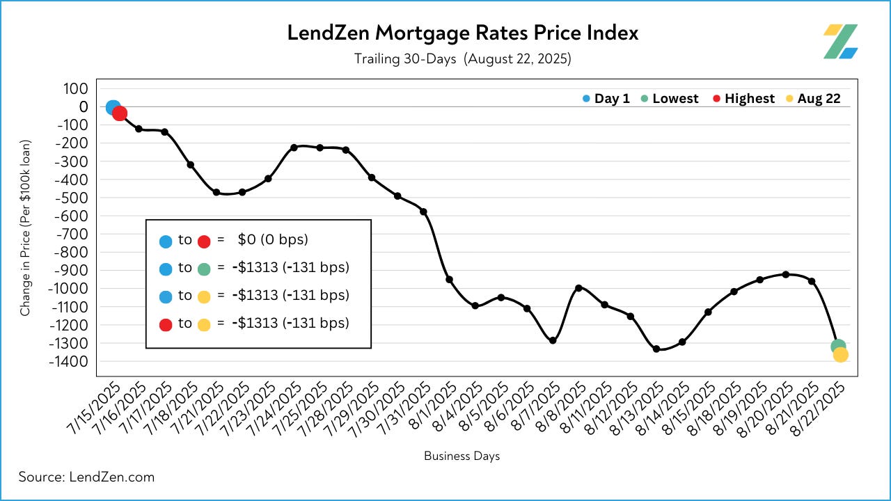 August has been a positive month, with the price of mortgage rates declining 130 basis points in the last 30-days.