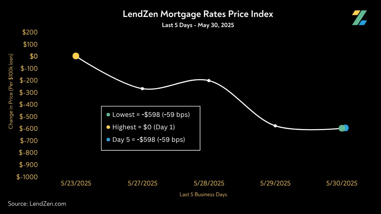Adding additional insight to this week’s article is the launch of the LendZen “Mortgage Rates Price Index”.